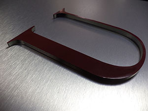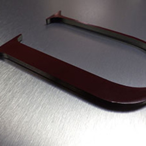 Brushed aluminum signs with laser cut acrylic letters with 1/4 plexiglass front. Mounted with stainless chrome or black standoffs.
