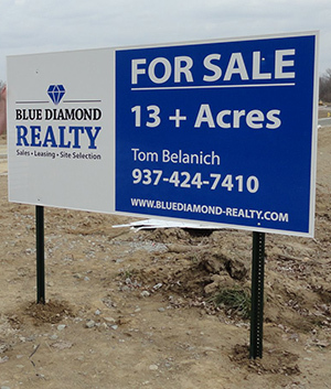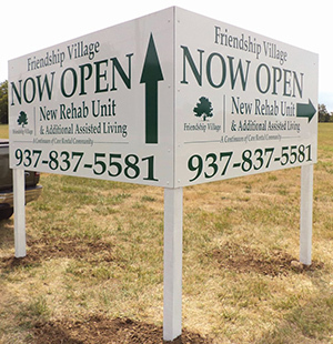 4x8 Polymetal Boards, vinyl lettering, mounted on painted 4"x4" treated wooden posts